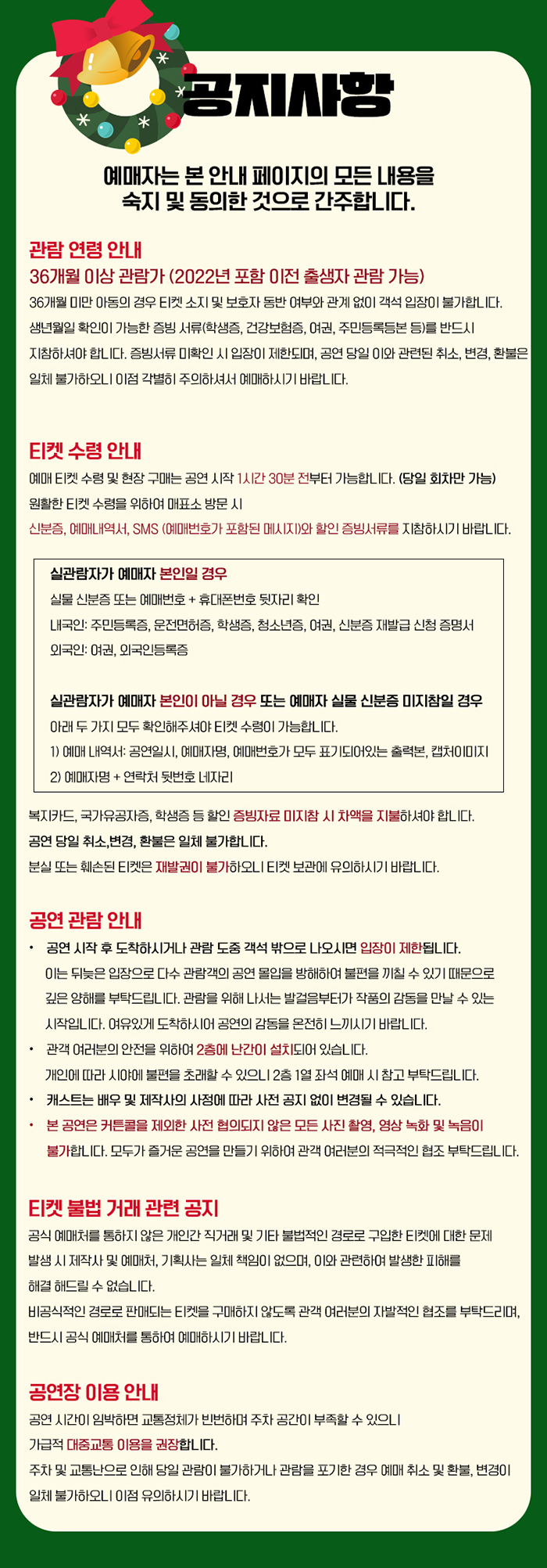 ÆòÀÏ 19½Ã 30ºÐ, Åä¿äÀÏ 15½Ã/18½Ã, ÀÏ¿äÀÏ/Å©¸®½º¸¶½º 15½Ã (*¿ù¿äÀÏ °ø¿¬ ¾øÀ½)